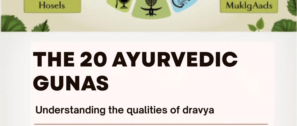 The 20 Gurvadi Gunas are ten pairs of opposite qualities. Understanding these opposites is key to understanding Ayurvedic principles like balance and imbalance.
